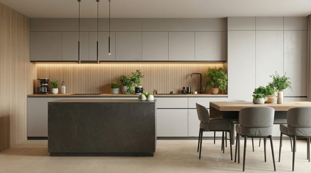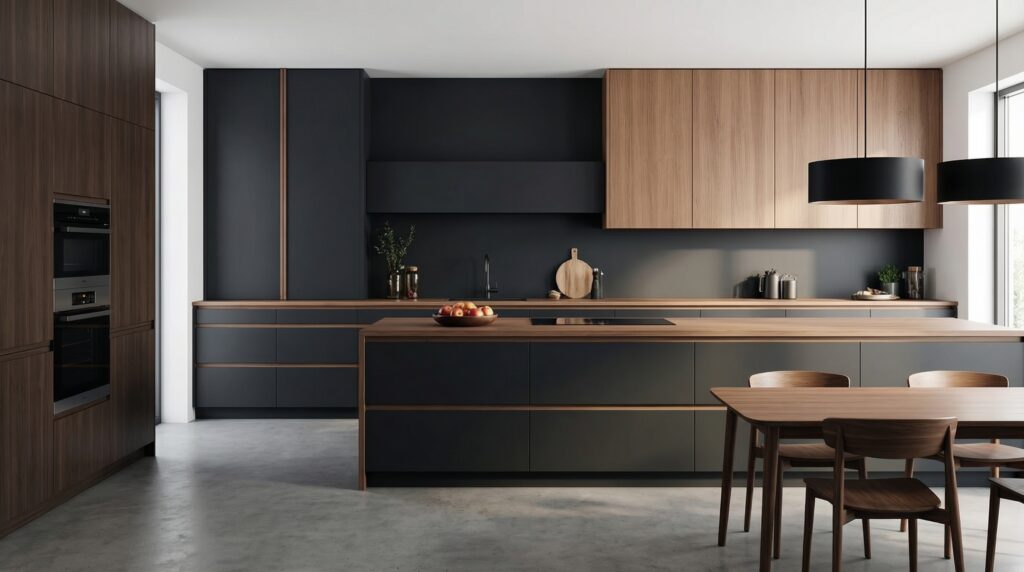 - Door options: sleek matte, textured wood tones, and clean dark-luxe palettes.