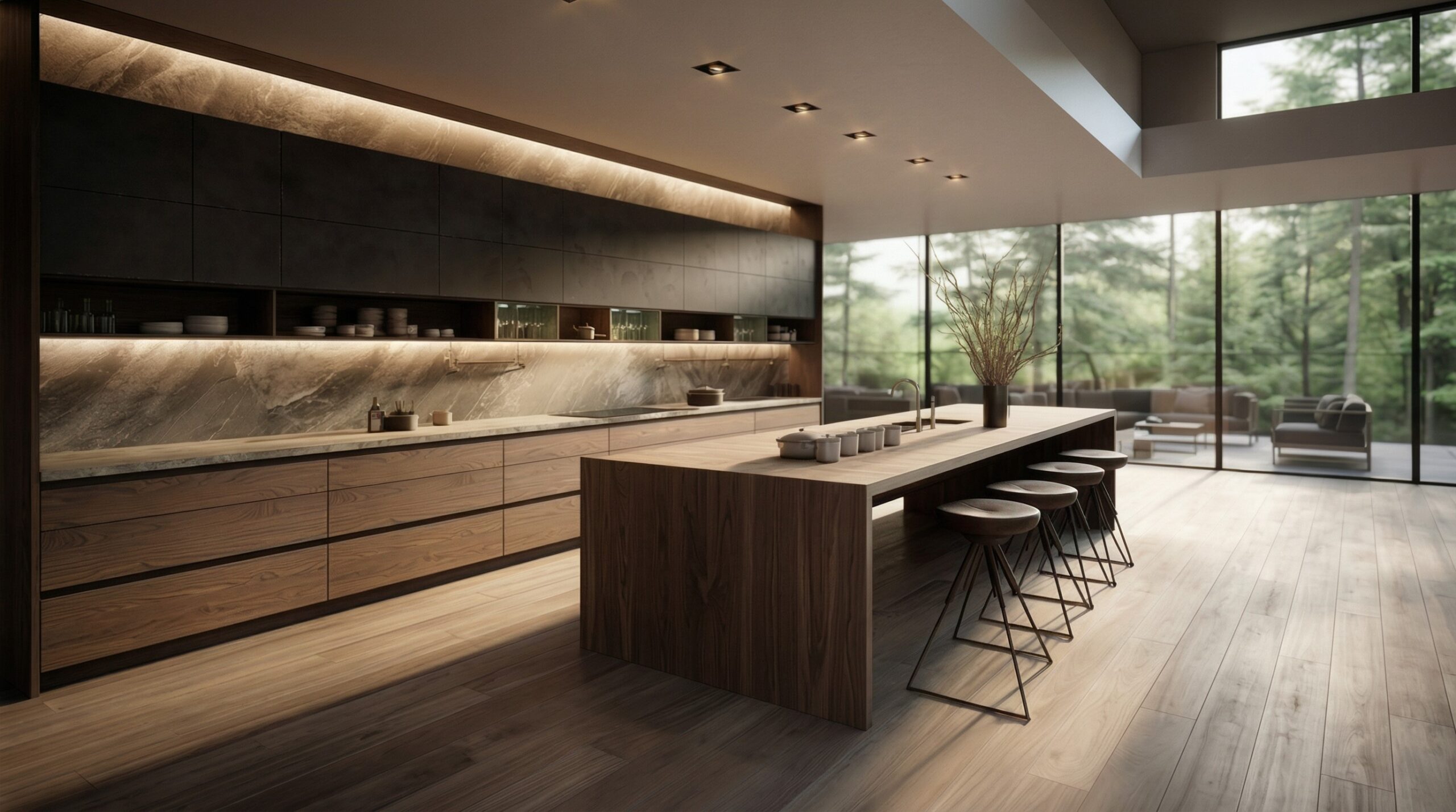 We optimize the kitchen around movement, storage and view alignment —