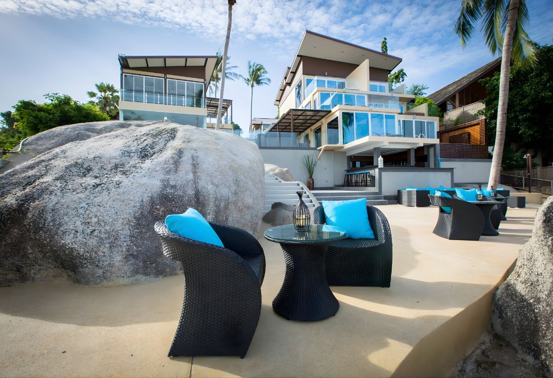 A key challenge of the **resort upgrading** was integrating the new structures with Samui’s massive granite boulders. We utilized precise geotechnical engineering to anchor the villas around these natural formations without disturbing the geology. This Design & Build approach created a seamless fusion of masonry and nature.